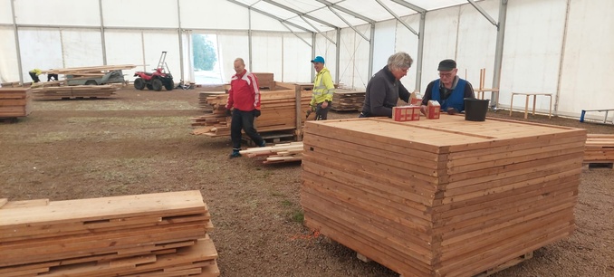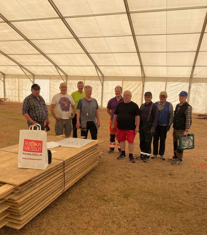 20.8.2023 klubi vuonna aloitti tänään kolmatta kertaa Ruoka-Messujen näyttelyn rakentaminen yhdessä Lions Club Kauhajoen kanssa